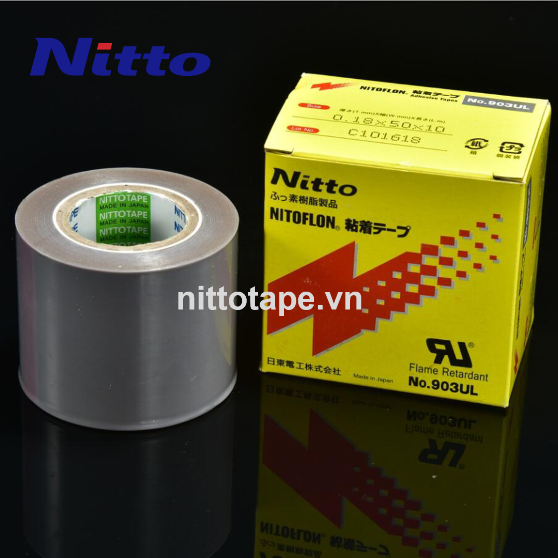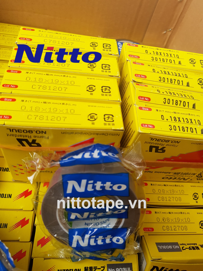 Băng keo cách điện, chịu nhiệt dây dẫn Nitto 903UL còn được gọi là băng keo NITTO DENKO nhiệt độ cao có nguồn gốc từ Nhật Bản