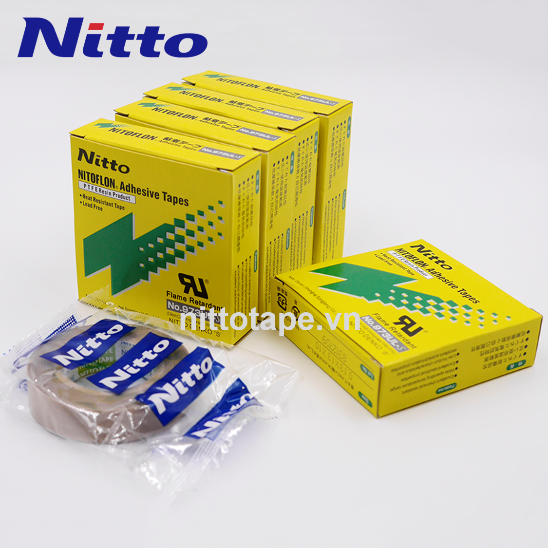 Băng keo cách điện, chịu nhiệt dây dẫn Nitto 973UL còn được gọi là băng keo NITTO DENKO nhiệt độ cao có nguồn gốc từ Nhật Bản